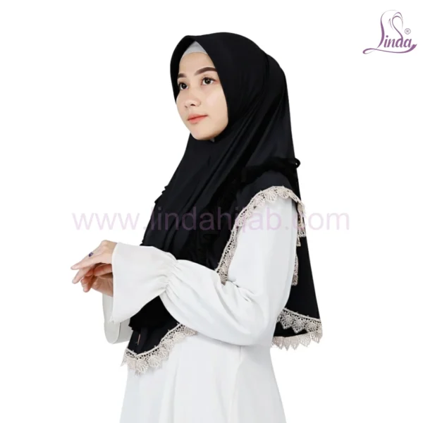 Black Lace Trim Instant Hijab for Girls – Elegant Wear