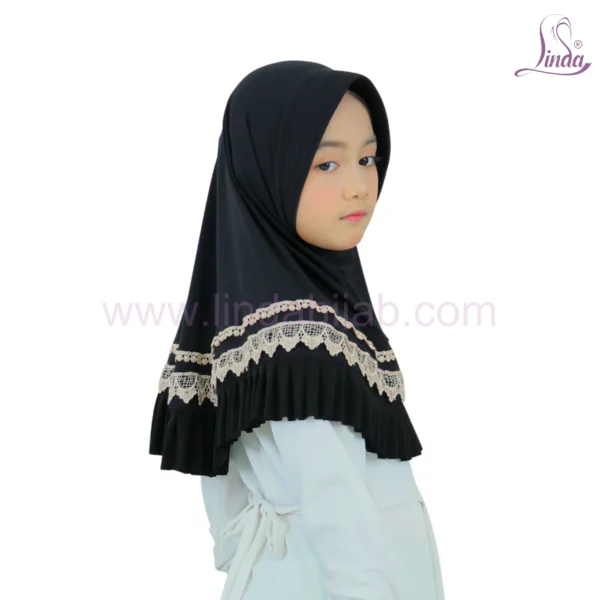 The Chic Black Lace & Ruffle Hijab for Kids combines modesty, comfort, and elegance. Made from soft, breathable fabric with lace trim and ruffles, it?s perfect for school, daily wear, and festive occasions. Lightweight, stylish, and easy to care for all seasons.