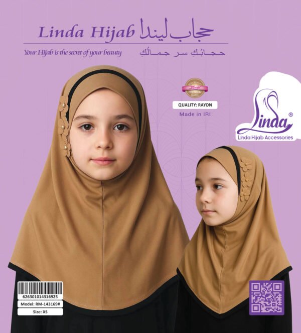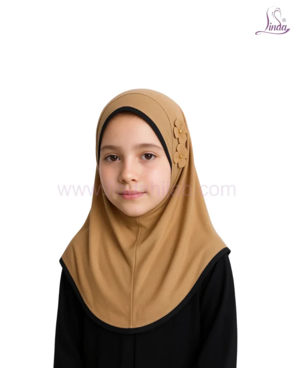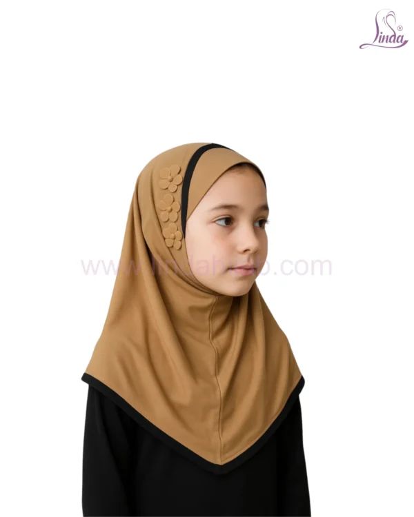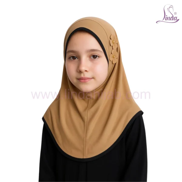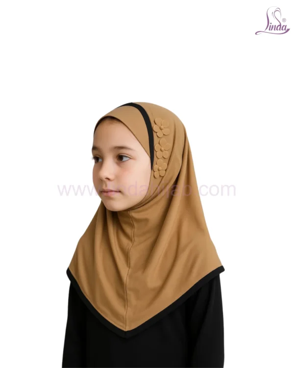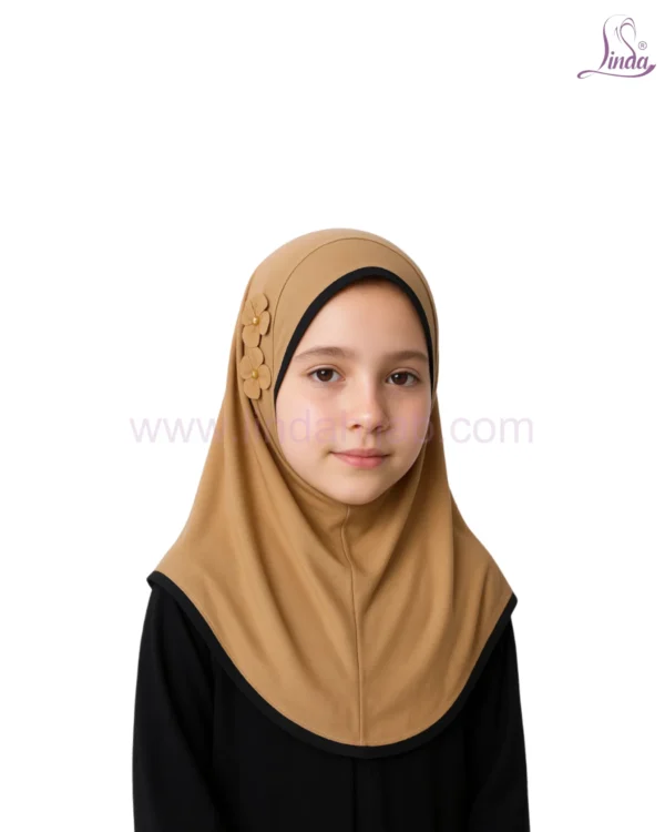 Classic Camel Hijab for Kids with Decorative Flower Accents