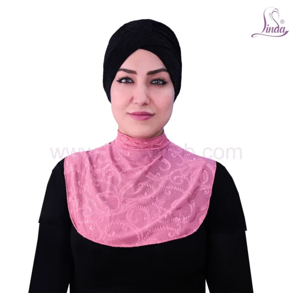 Add a pop of color and elegance to your modest wardrobe with this stunning pink cotton neck cover, featuring beautiful embossed lace detailing for a sophisticated look.