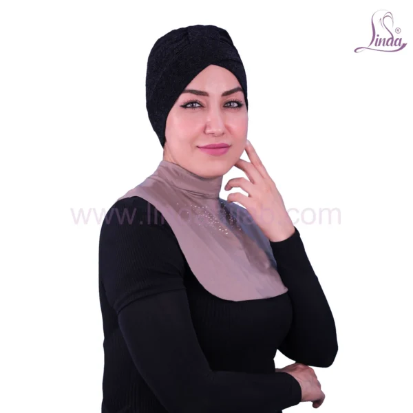 Add a touch of sparkle and sophistication to your hijab style with this elegant mauve cotton neck cover, beautifully adorned with delicate rhinestone embellishments for a glamorous finish.