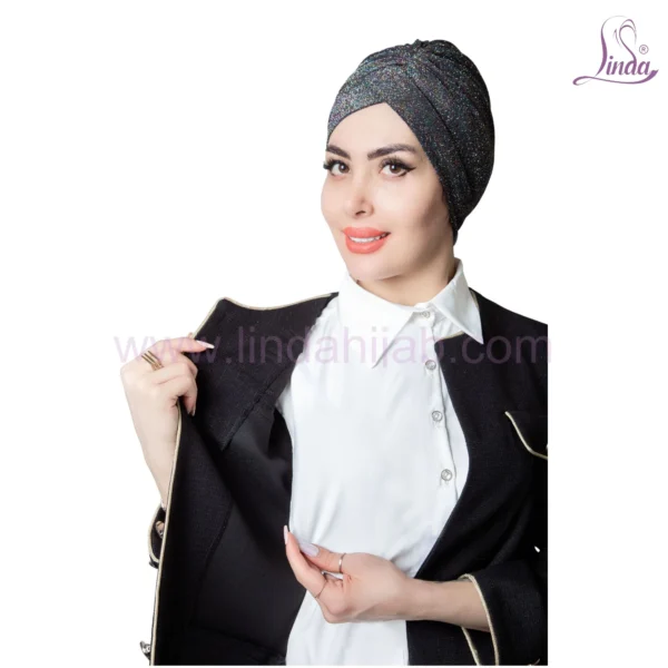 Elevate your hijab style with this stunning dark shimmer mini turban bonnet cap, featuring a sophisticated twisted design and subtle sparkle finish that adds elegance and glamour to your everyday or special occasion look.