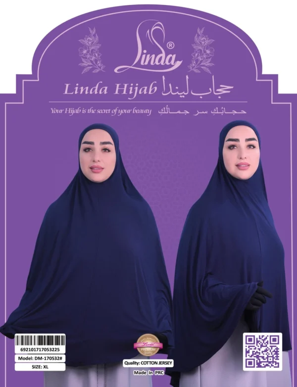 This Ladies Rayon One Piece Hijab in deep navy blue offers a sleek and elegant design crafted from soft, breathable rayon fabric. It provides full coverage with a smooth, flowing silhouette that is both modest and comfortable.