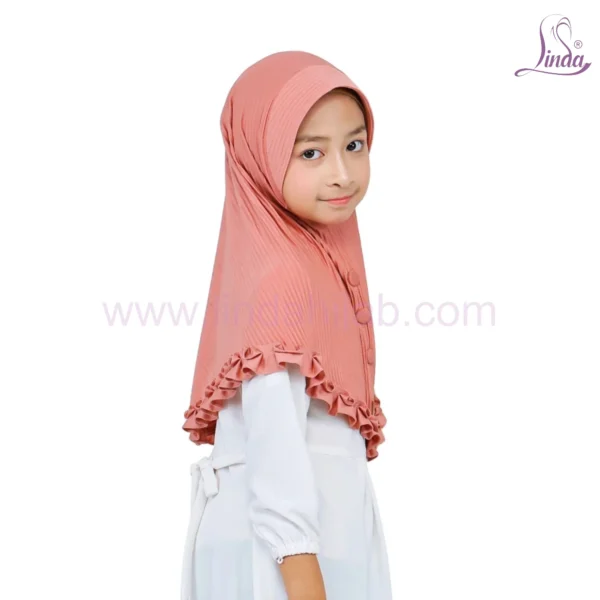 The Peach Pleated Hijab for Kids is a delightful and practical instant head covering, designed specifically to make modesty easy and fun for young girls. Perfect for school, religious lessons, or playful outings, this hijab features a cheerful peach color and charming details like vertical pleats, decorative buttons, and a ruffled edge.