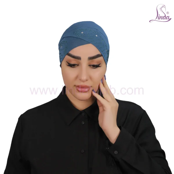 Sparkling Azure Cross-Front Turban – Glamorous & Secure Fit